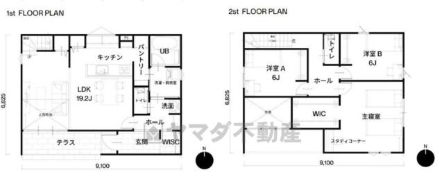 LDK19.2畳(1F)、洋9.8畳(2F)、洋6畳(2F) |