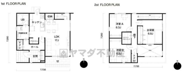 LDK17畳(1F)、洋6.8畳(2F)、洋6.3畳(2F) |