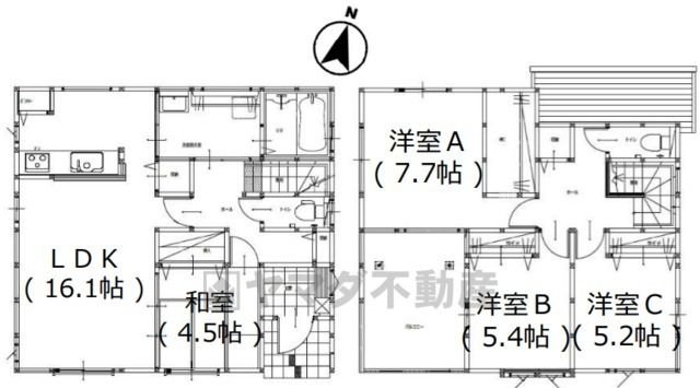LDK16.1畳(1F)、和4.5畳(1F)、洋7.7畳(2F)、洋5.4畳(2F)、洋5.2畳(2F) |