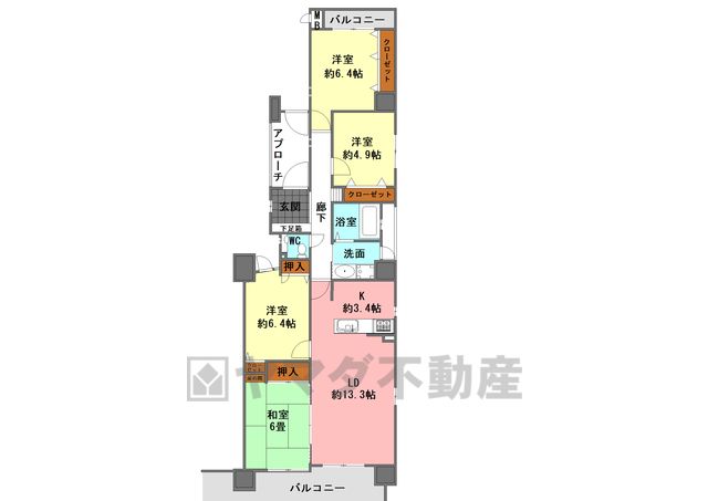 | 間取り詳細 | LDK16.7畳、和6畳、洋6.4畳、洋4.9畳 | 土地権利 | 所有権 |