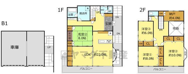 | 間取り詳細 | LDK14畳(1F)、和8畳(1F)、洋8畳(1F)、洋10畳(2F)、洋8畳(2F)、洋6畳(2F)、S4畳 | 都市計画 | 市街化区域 |