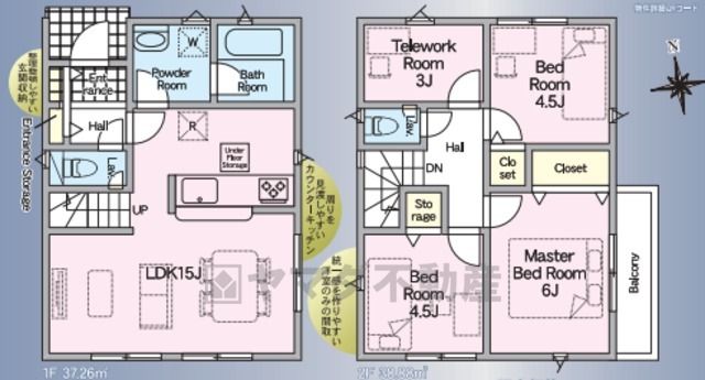 LDK15畳(1F)、洋6畳(2F)、洋4.5畳(2F)、その他3畳(2F) |