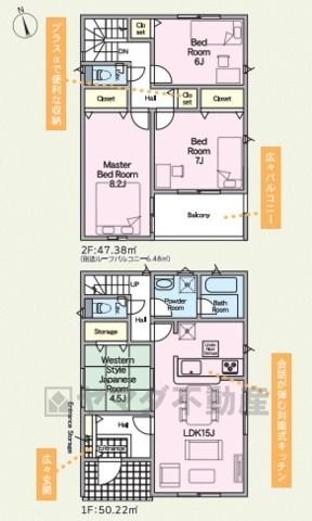 LDK15畳(1F)、和4.5畳(1F)、洋8.2畳(2F)、洋7畳(2F)、洋6畳(2F) |