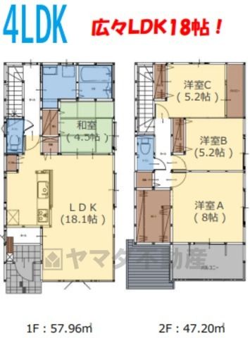 LDK18.1畳(1F)、和4.5畳(1F)、洋8畳(2F)、洋5.2畳(2F) |