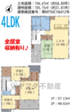 LDK16.9畳(1F)、和5畳(1F)、洋8畳(2F)、洋5.2畳(2F)、洋5畳(2F) |