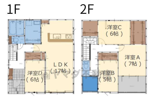 LDK17畳(1F)、洋6畳(1F)、洋7畳(2F)、洋6畳(2F)、洋5畳(2F) |