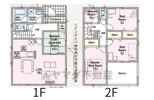 LDK18畳(1F)、和4.5畳(1F)、洋7.5畳(2F)、洋6畳(2F)、その他2畳(2F) |