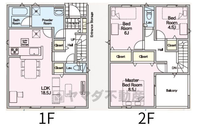 LDK18.5畳(1F)、洋8.5畳(2F)、洋6畳(2F)、洋4.5畳(2F) |