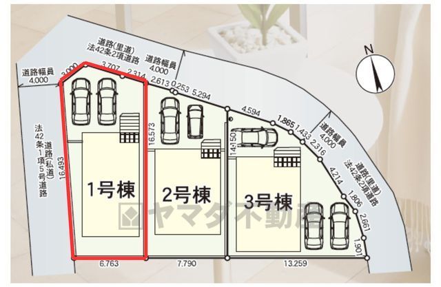 | 土地面積基準 | 公簿 | 接道 | 公道 北 幅員3.5m 私道 西 幅員4m |
