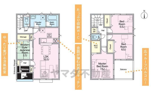 LDK16.2畳(1F)、和3.7畳(1F)、洋7.5畳(2F)、洋6.5畳(2F)、洋5.5畳(2F) |
