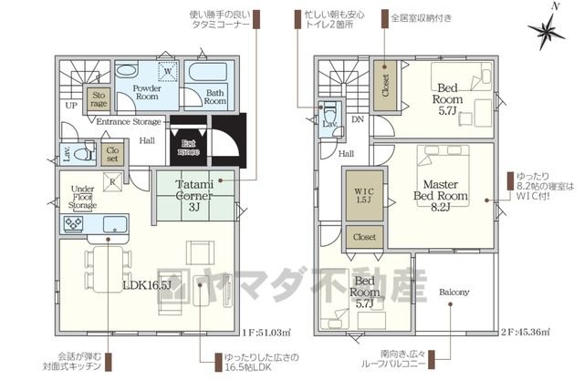 LDK16.5畳(1F)、その他3畳(1F)、洋8.2畳(2F)、洋5.7畳(2F) |