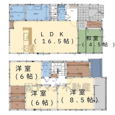 LDK16.5畳(1F)、和4.5畳(1F)、洋8.5畳(2F)、洋6畳(2F) |
