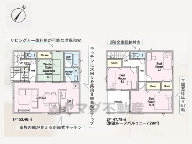 | 間取り詳細 | LDK17畳(1F)、和6畳(1F)、洋8.7畳(2F)、洋7畳(2F)、洋6畳(2F) | 都市計画 | 市街化区域 |