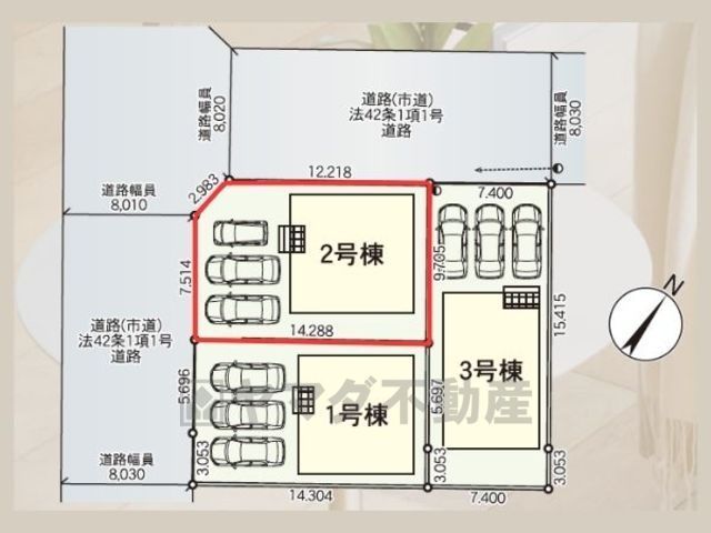 | 土地面積基準 | 公簿 | 接道 | 公道 南西 幅員8m (接面9m) 公道 北西 幅員8m (接面13.7m) |
