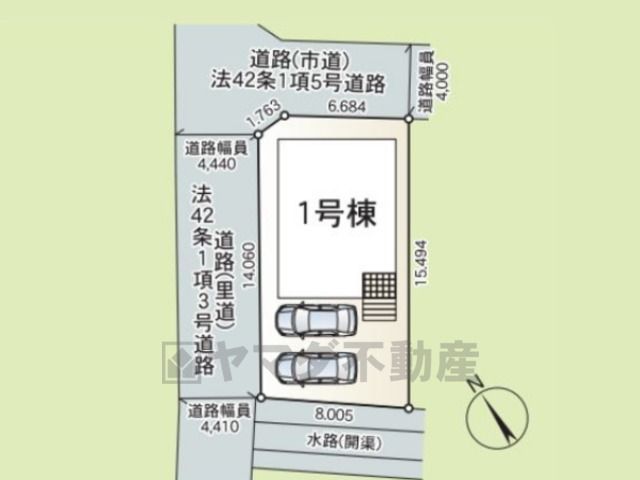 公道 北西 幅員4.4m (接面14m) 公道 北東 幅員4m (接面6.6m) |
