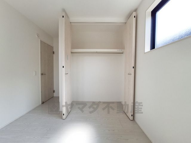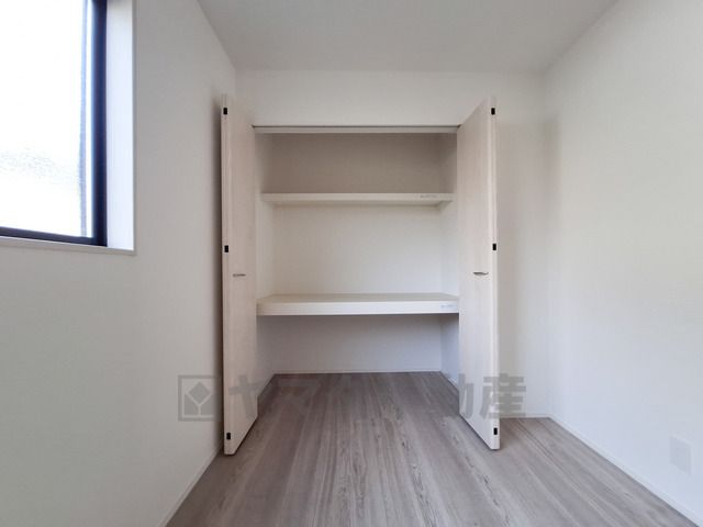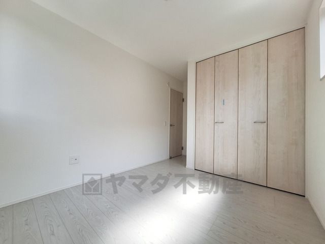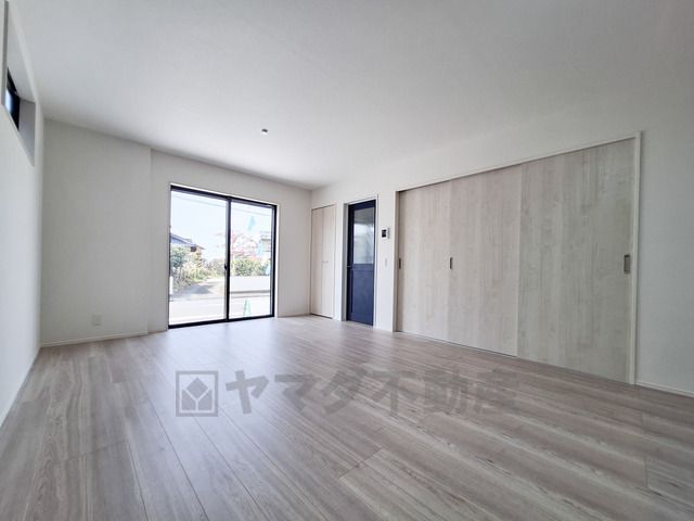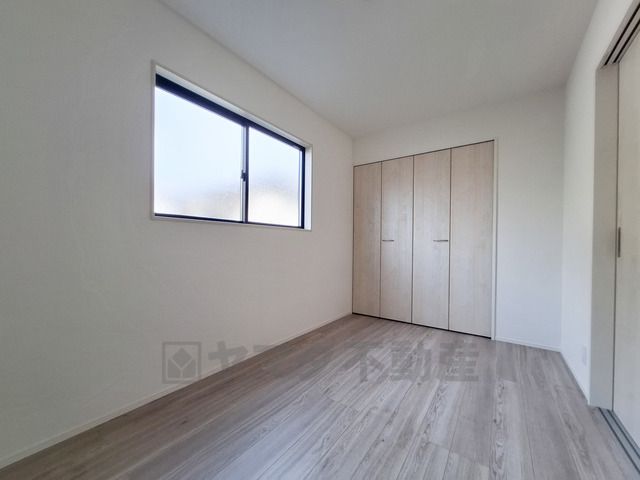 明るい光が差し込む洋室です。収納スペースが備わっているため室内をすっきりと保てます。シンプルな内装が幅広いインテリアに調和します。床材の色合いが落ち着いた雰囲気を演出しています。