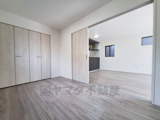洋室はナチュラルな色合いのフローリングが印象的です。引き戸で空間の使い方に幅が出ます。収納スペースが広く使いやすいです。