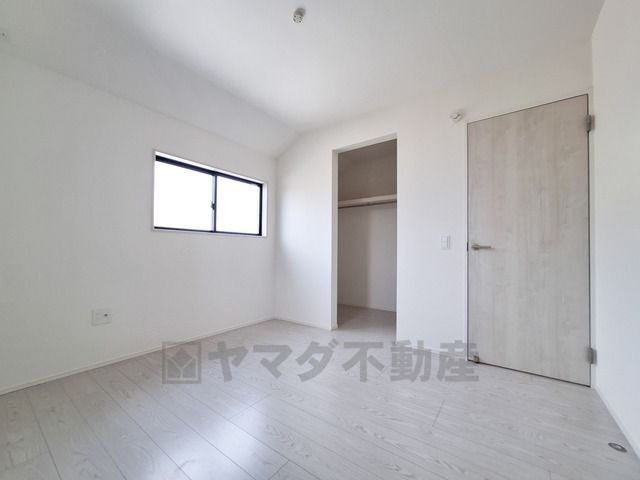 明るい光が差し込む洋室で室内はナチュラルな色合いに仕上げられています。大きなクローゼットがあり収納スペースも充実しています。シンプルな内装でお好みに合わせて使いやすい空間です。